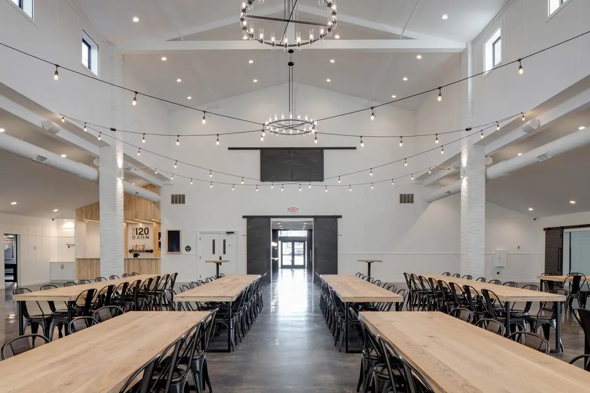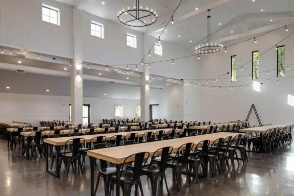 If you do have a smaller space, round tables tend to be more advantageous because the lack of corners allowing for easier maneuverability in a smaller space as well as offering quite a bit of seating in a small footprint.