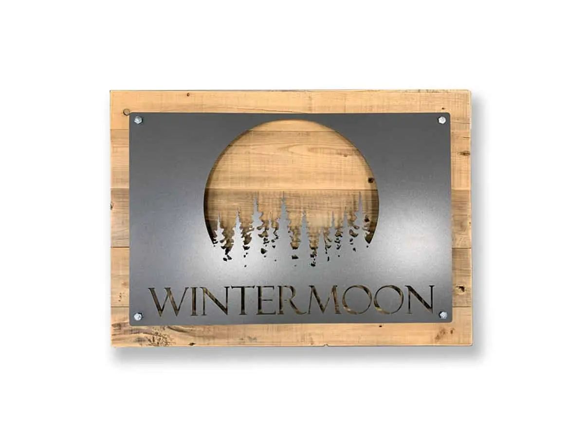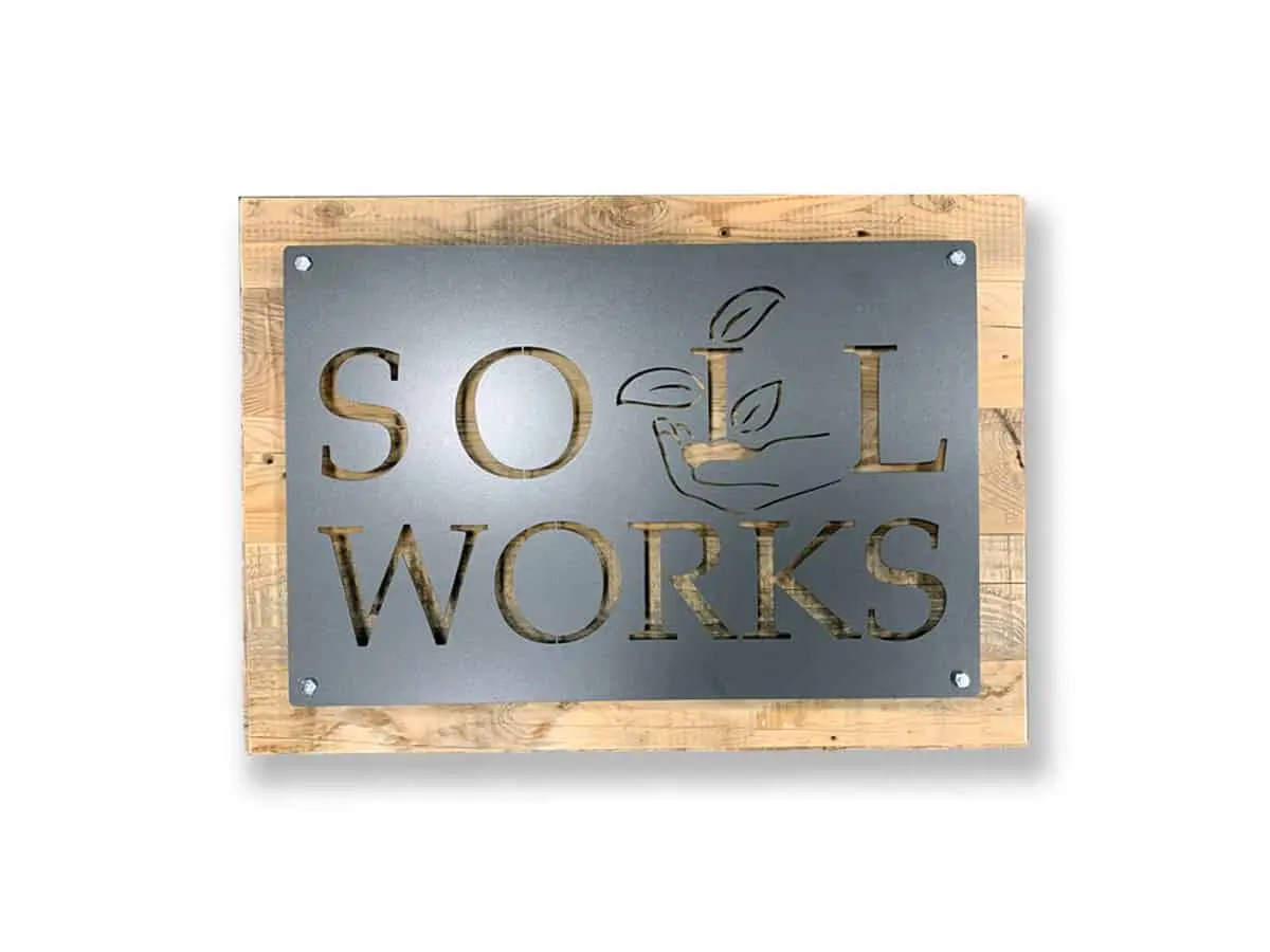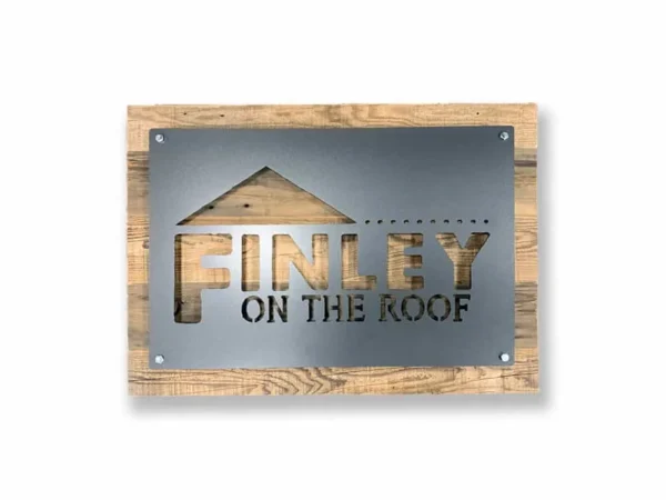 Custom Business Logo Sign – Each custom business logo sign is a work of art with your business logo; crafted from laser cut steel and mounted on a reclaimed wood frame to make a bold statement for your business brand and logo.