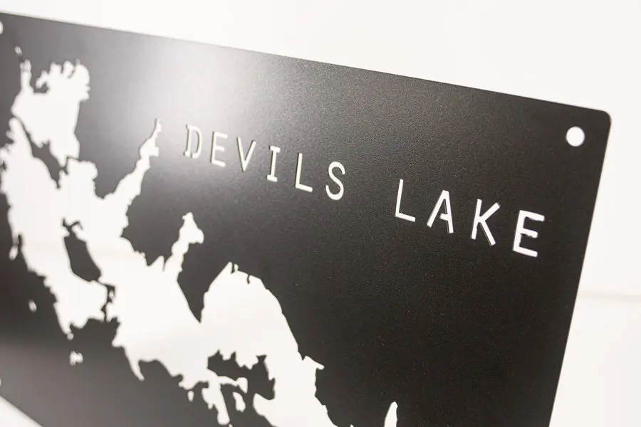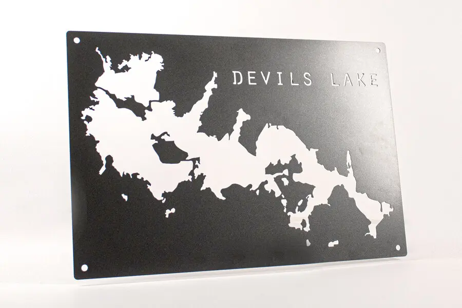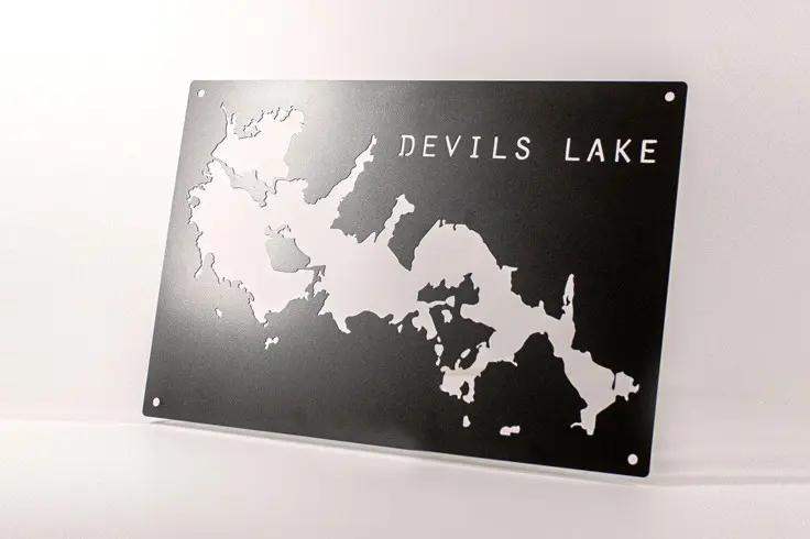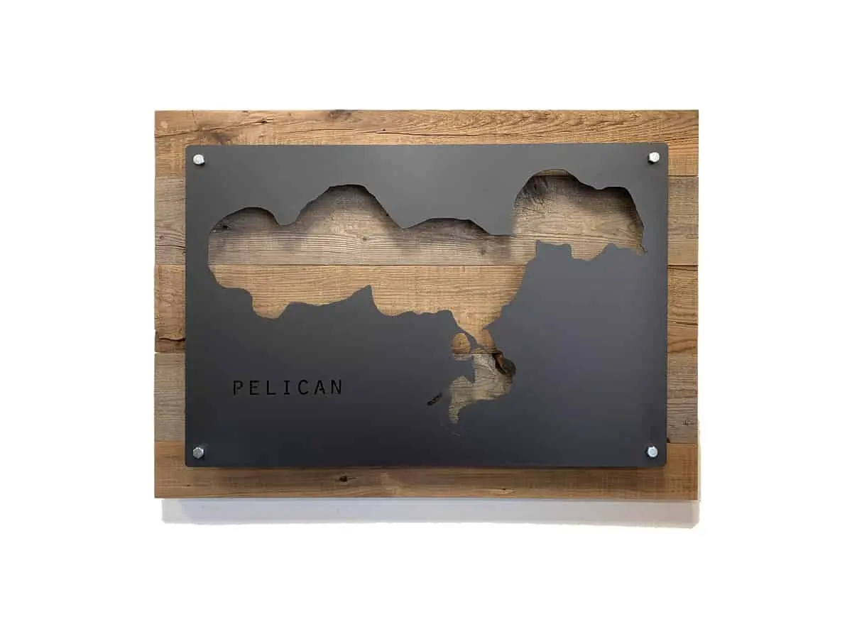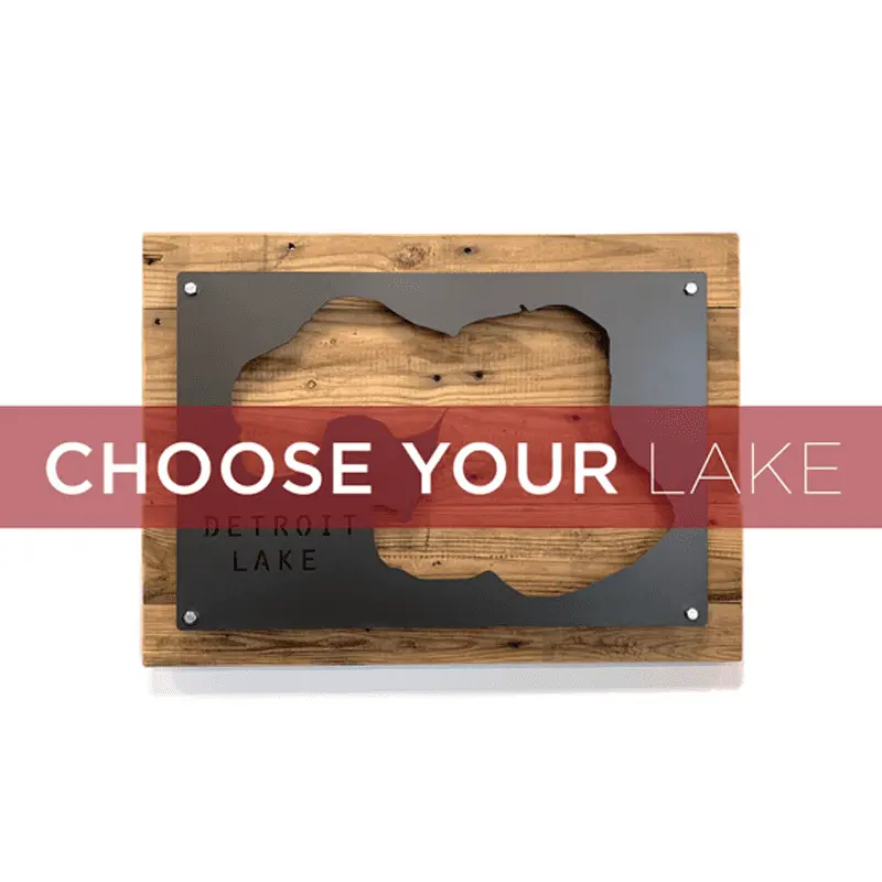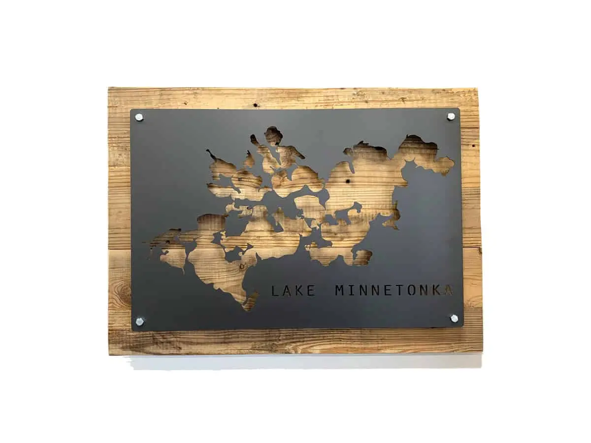 Custom Lake Sign Wall Art – Each piece of unique wall art is a custom made composition illustrating the lake of your choice; crafted from laser-cut steel and mounted on a reclaimed wood frame sure to have you dreaming of your weekend lake getaways.
