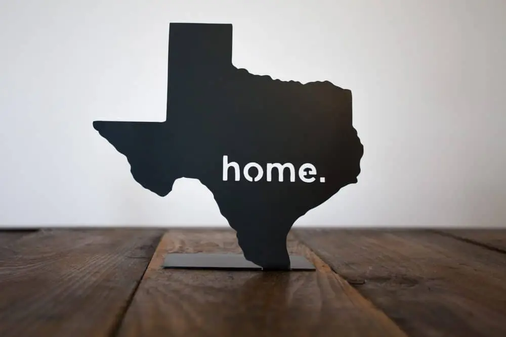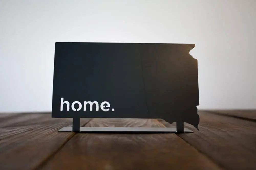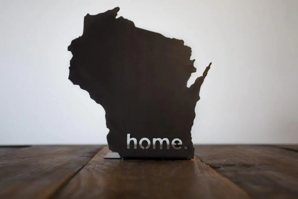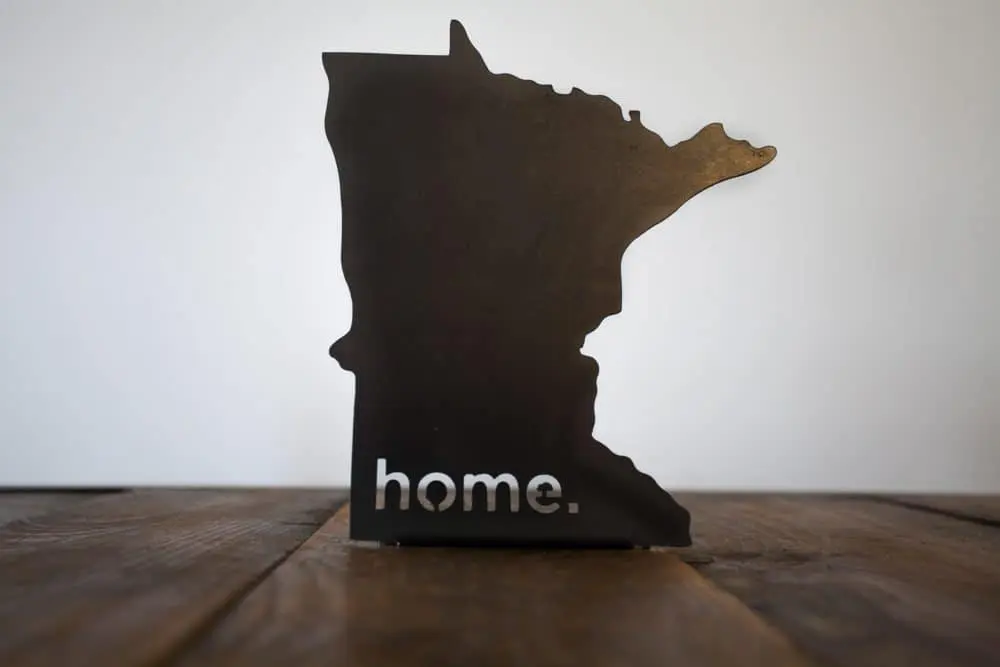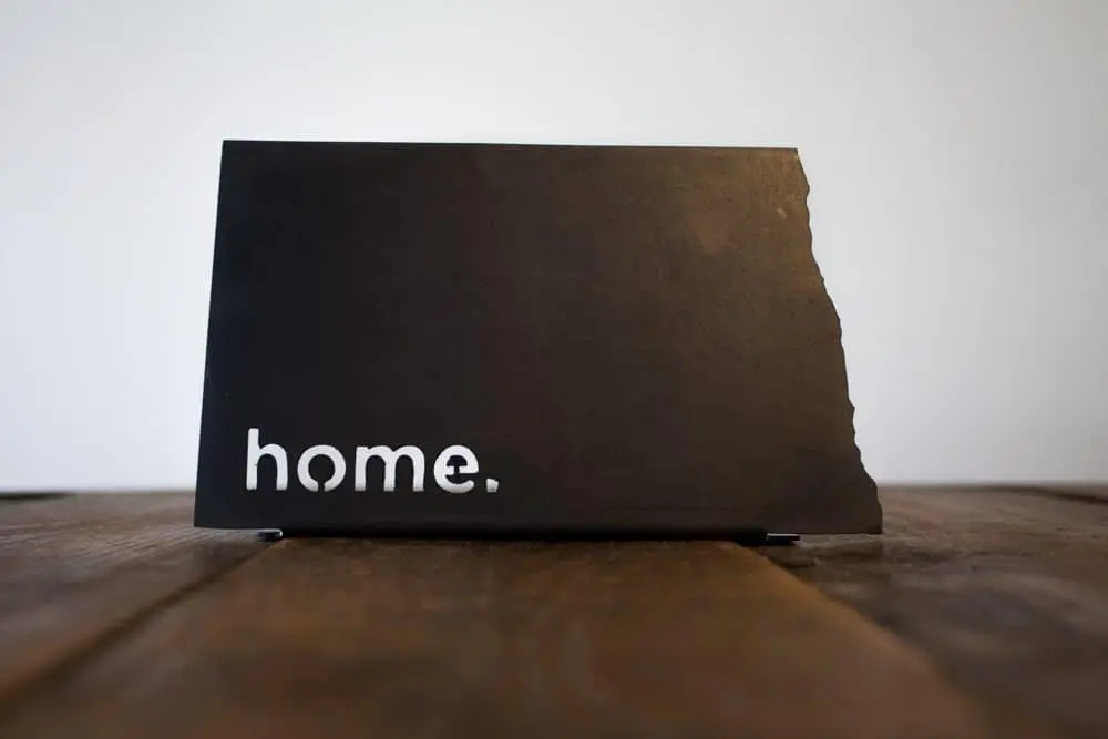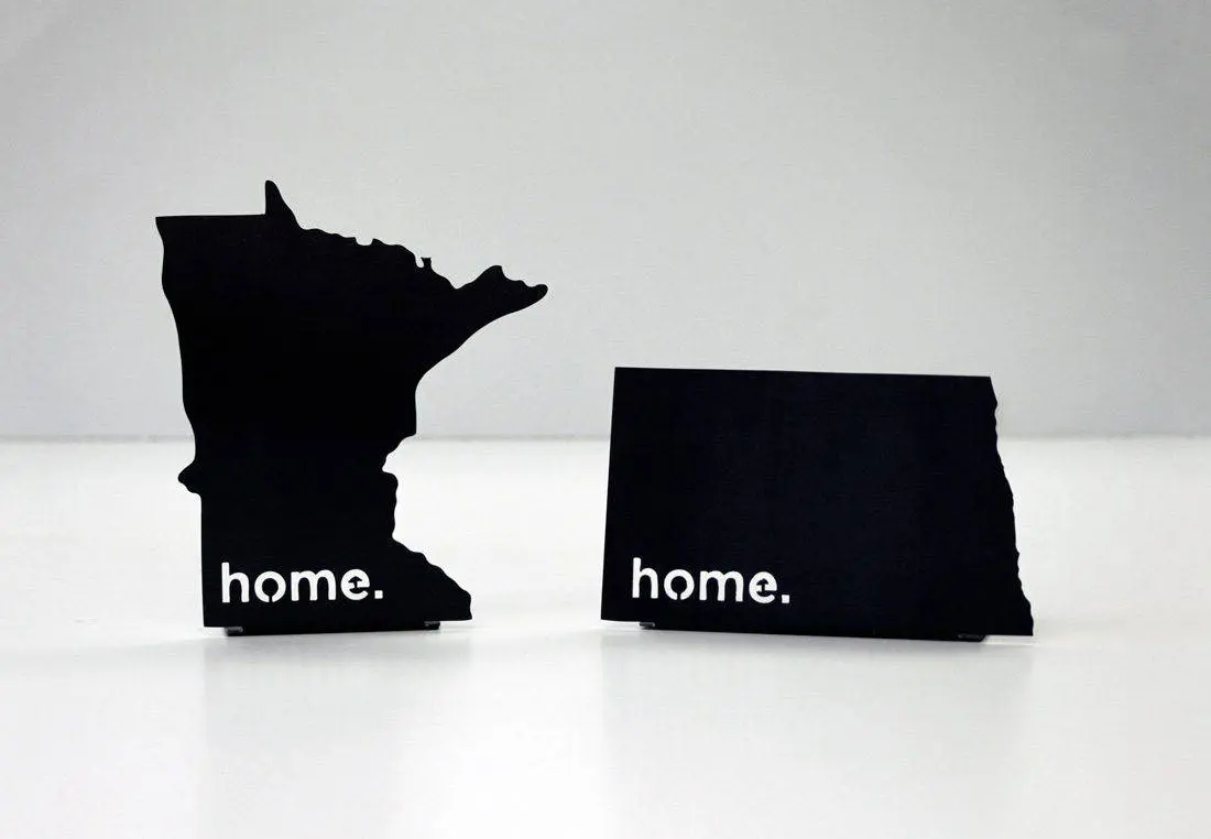 HOME State Steel Sign – These small steel state signs are built from laser cut steel and preserved with a wax finish. Signs stand independently with a bent steel flange as a great way to show off your state pride.