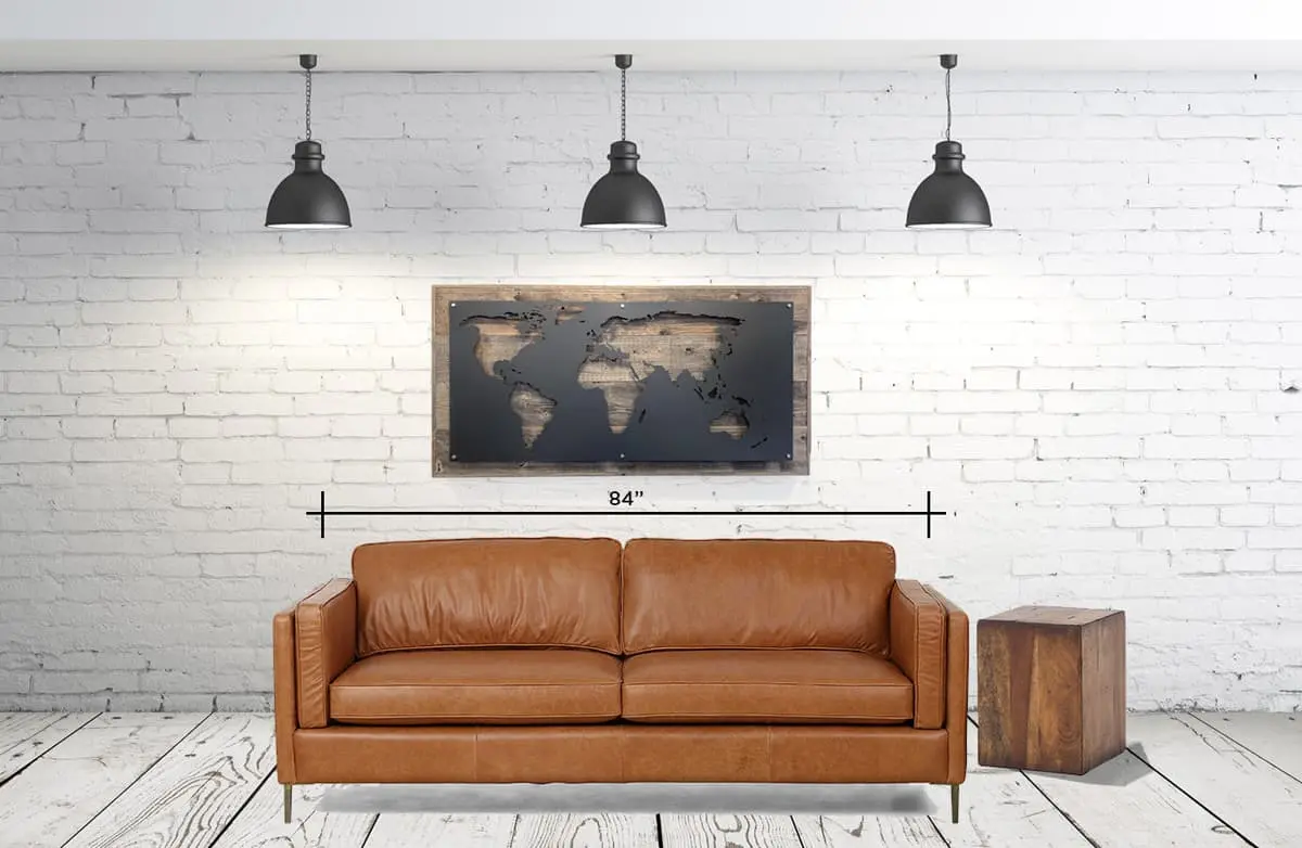-Standard World Map Dimensions – 32″x17″x1.5″ deep