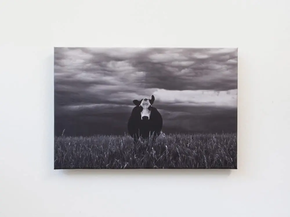 Mad Cow Canvas Print – A note from the photographer – This moment was captured as an alert cow stands alone watching over her nearby calf as an evening storm rolls in just before sunset. The photo was taken in a field near Lake Sakakawea in western North Dakota.