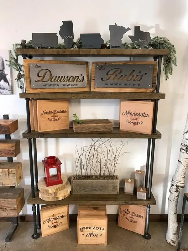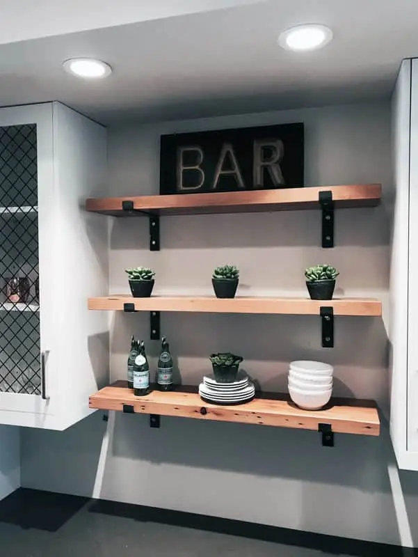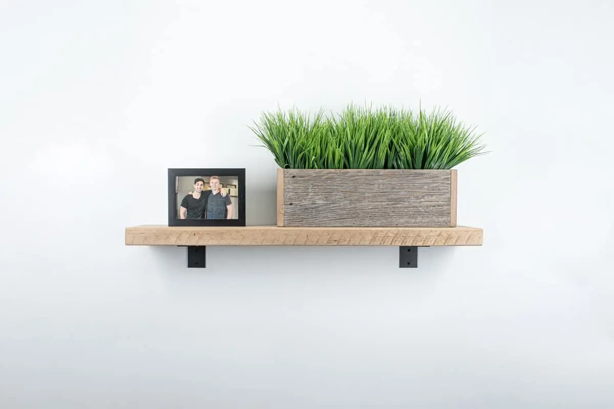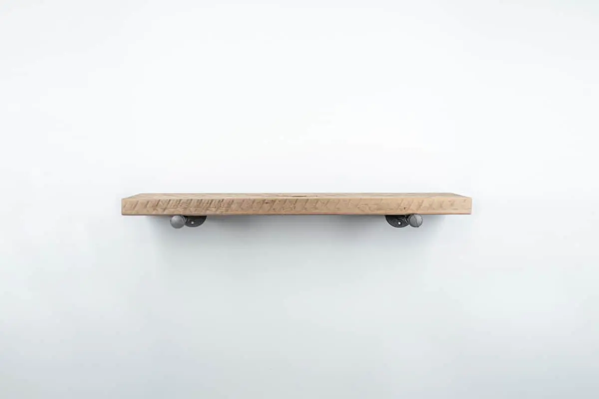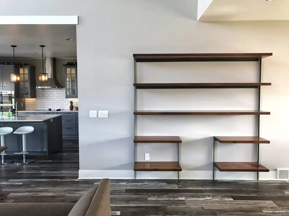 From bookshelves to floating shelves, bar shelves or office shelving units, our wood and metal shelf options are fully customizable. We can build wood shelves from reclaimed wood or solid hardwood and then stain the shelves with one our popular finish options. We also offer full shelving units for your bar, home, retail shelves, display fixtures, or office shelves. Our residential shelves include customizable wood shelf options with floating shelf brackets, exposed metal brackets or industrial pipe shelves.