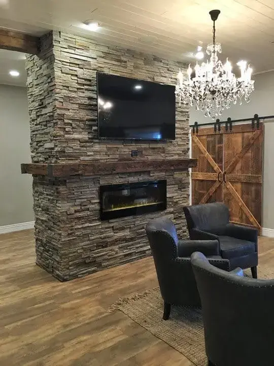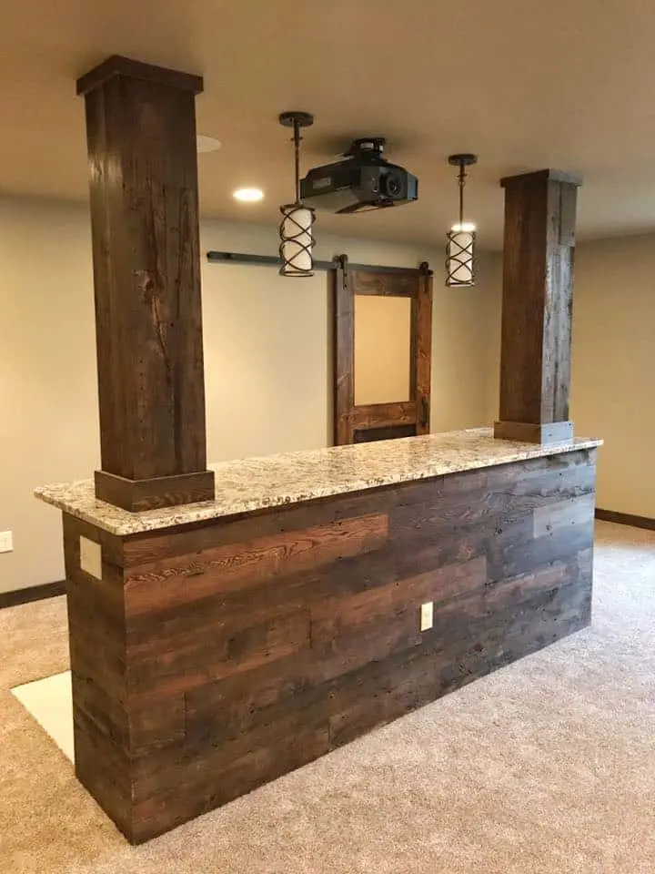 Our wood wall paneling and reclaimed wood wall paneling is always in stock and is offered in various pre-finished stains and textures or can be left raw as our most popular reclaimed brown board paneling. This material is perfect for creating a focal point in your room. Various applications can include recessed ceilings, nooks, fireplace surrounds, feature walls, and other unique installations.